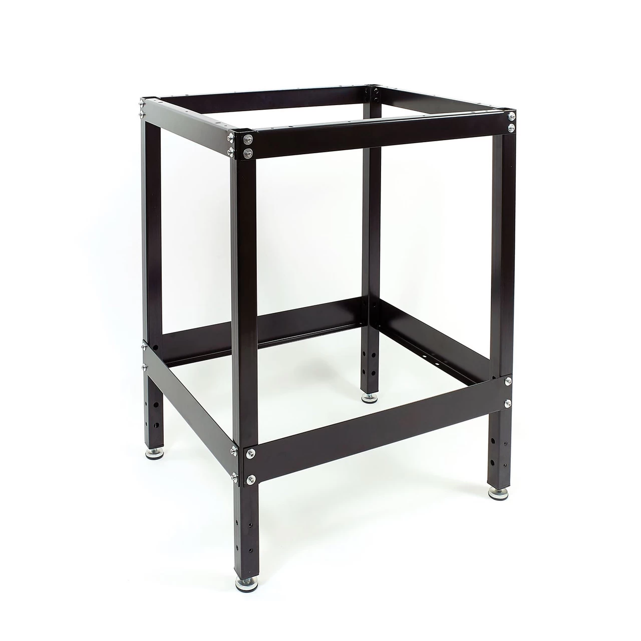 Our AUKTools heavy duty router table stand is made with sturdy square section steel legs, steel angle cross braces all powder coated in black for long lasting durability. The pre-installed welded steel nuts make assembly quick and easy using the supplied hex socket cap screws. The anti-slip non marking feet are height adjustable for levelling on un even floors. Fits all JessEm router table tops including the Mast-R-Lift Excel II table. Suitable for use with router table tops of 800 x 600mm, 32” x 24” or larger where a quality robust table is employed.