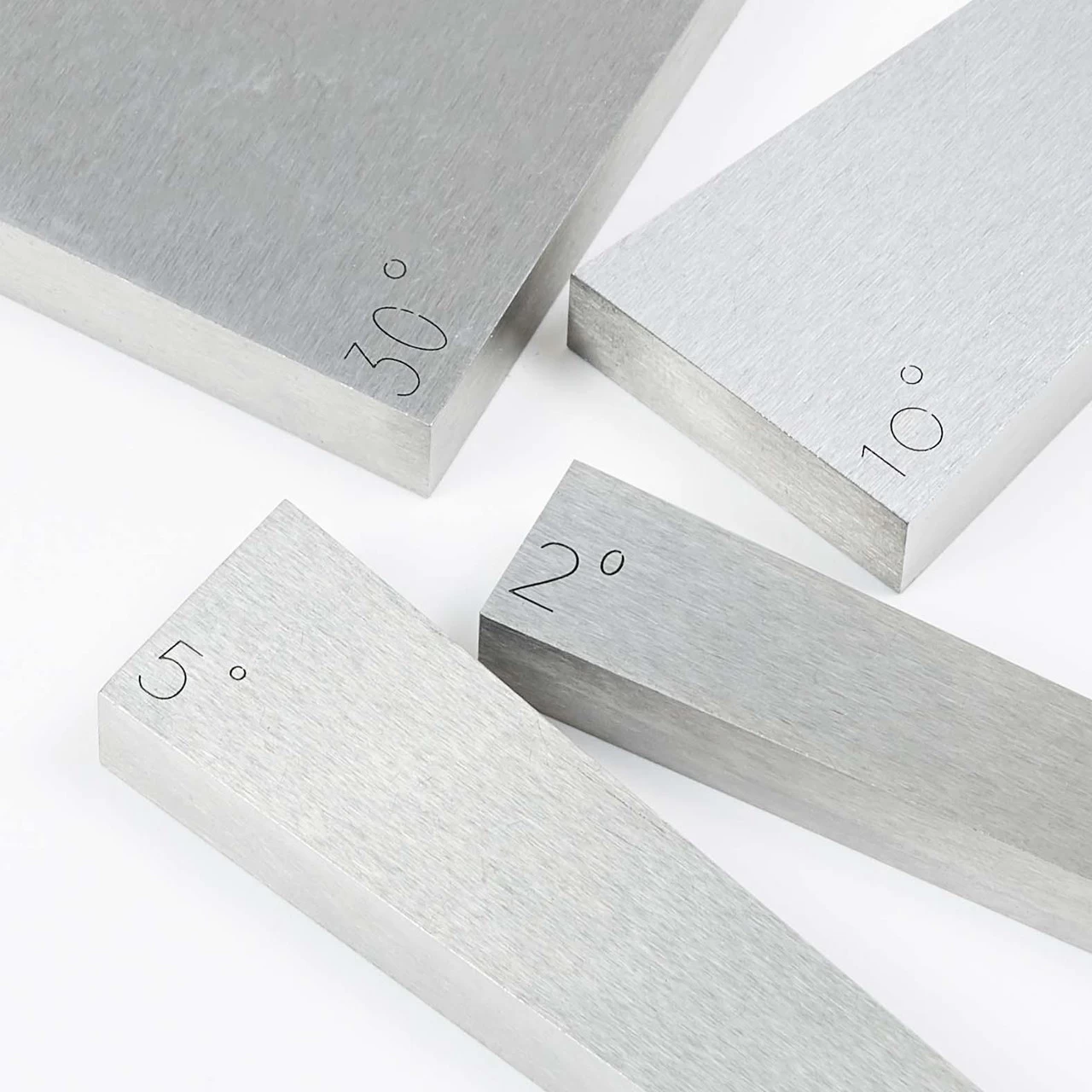 These steel angle blocks come in 10 different angles which are hardened and precision ground to a degree accuracy of ±0.006°. The blocks can be used together to either add or subtract from each other for example 30° plus 3° or by flipping around 30° minus 3° making them very adaptable.