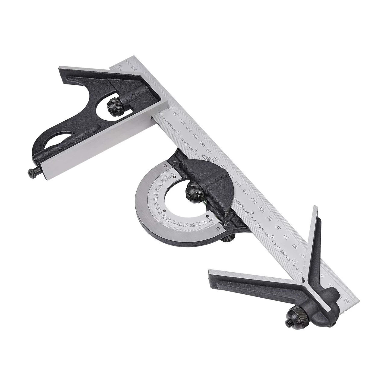 The set includes a combination square, a protractor a centre head and scribing tool. The combination square features a heavy-duty cast iron stock that is precision ground on all faces and sides, coupled with a fine quality 300mm/12″ satin stainless steel blade and spirit level. The protractor allows for 180-degree angle setting in either direction and a centre head for finding centres of circles. This set offers great accuracy with an excellent price to match.