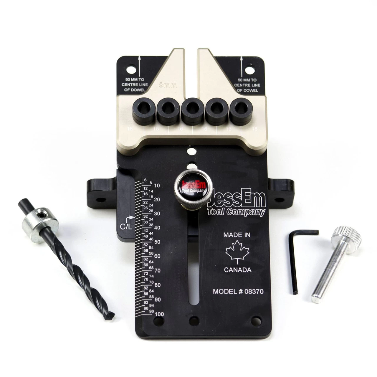 A built-in alignment slot allows you to match up dowel holes that are spaced further apart for perfect aligned dowel holes. Constructed of precision CNC machined aluminium, anodised for durability and laser engraved for fast set-ups.