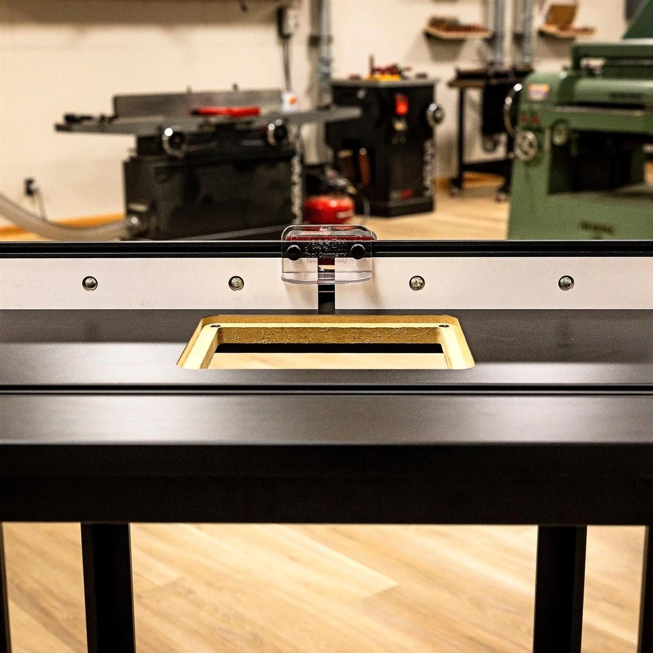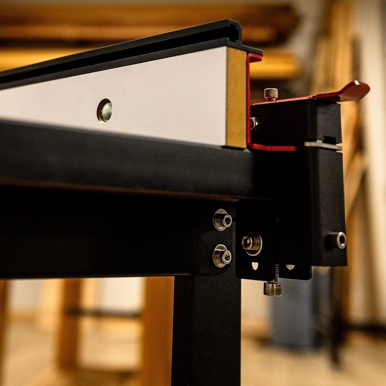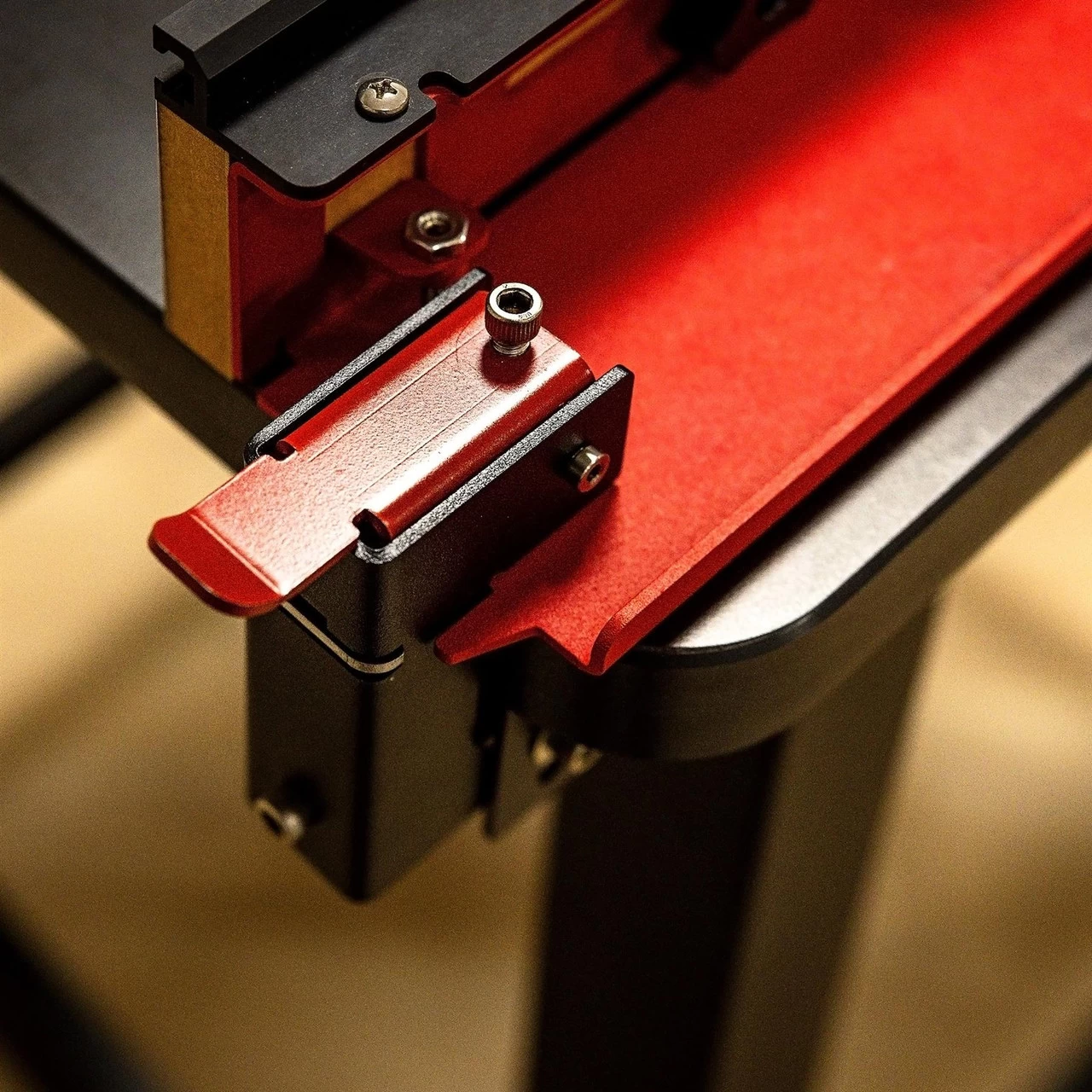 The JessEm Rout-R-Fence II is one of the most advanced router table fences in its price range. The Rout-R-Fence II looks as beautiful as its functions and features a new cam locking fastening system to allow you to lock and unlock your fence quickly when needed. The fence is cut and bent out of 12 gauge steel and the top track is machined out of a custom aluminum extrusion. Together this provides a high quality, accurate router table fence.