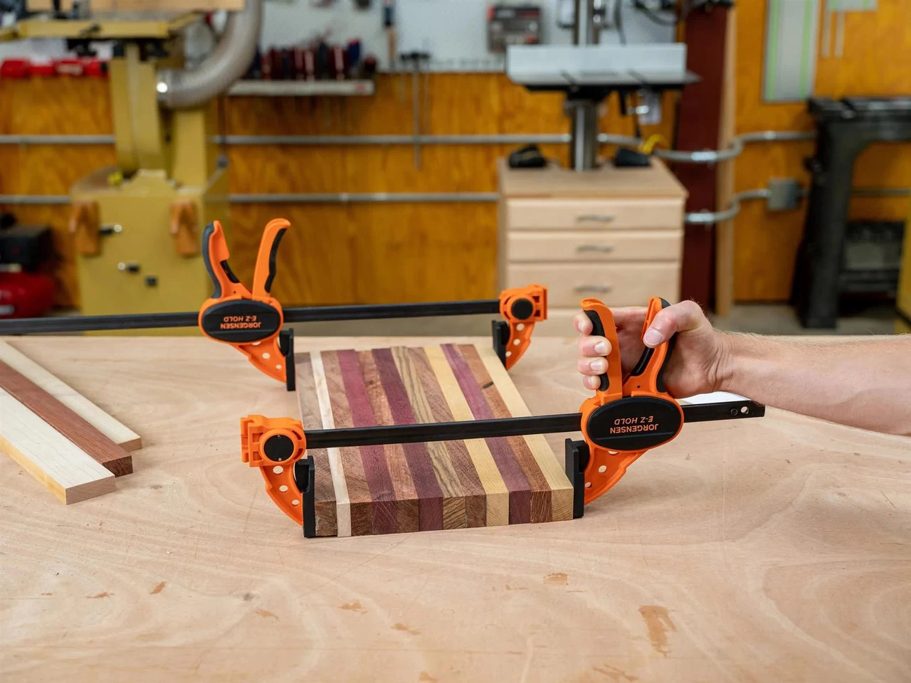 Jorgensen’s unique E-Z HOLD bar clamps offer more clamping pressure than standard squeeze clamps, with easy one-handed clamping that can quickly be converted to spreader clamps. The contoured comfort grip and quick-release lever make it simple to get a firm grasp, and the exclusive patented feature lets you join two clamps together to create a clamp with more than double the opening capacity of a single clamp. Deep reach 86mm pads help protect your work from any marks or scuffs when using utilizing the 300 lbs of clamping force. A very capable all-around workshop clamp and spreader which when needed can be used in pairs to double the capacity.