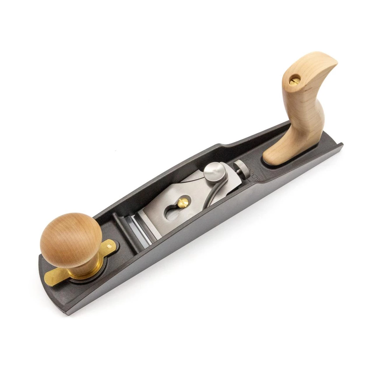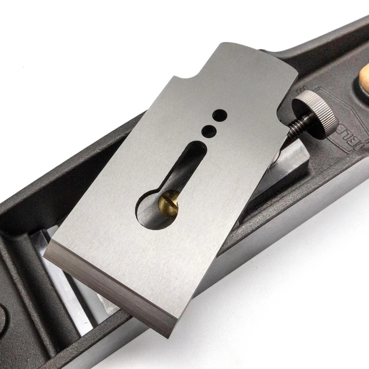 The blade is set bevel-up in the milled plane bed at 12 degrees providing you with a very low angle of attack. The blades fix down hard on the plane casting, so blade’s cutting edge is provided with maximum support no matter the workpiece.