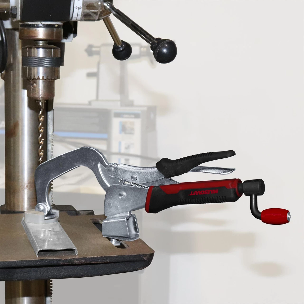 Milescraft versatile BenchClamps™ can be mounted to most clamp tracks on the market. They also mount to workbenches and even drill presses for repetitive clamping with complete 360° rotation. Pair the BenchClamps™ with the Milescraft ClampAnchors™ for a permanent workbench clamping station.
