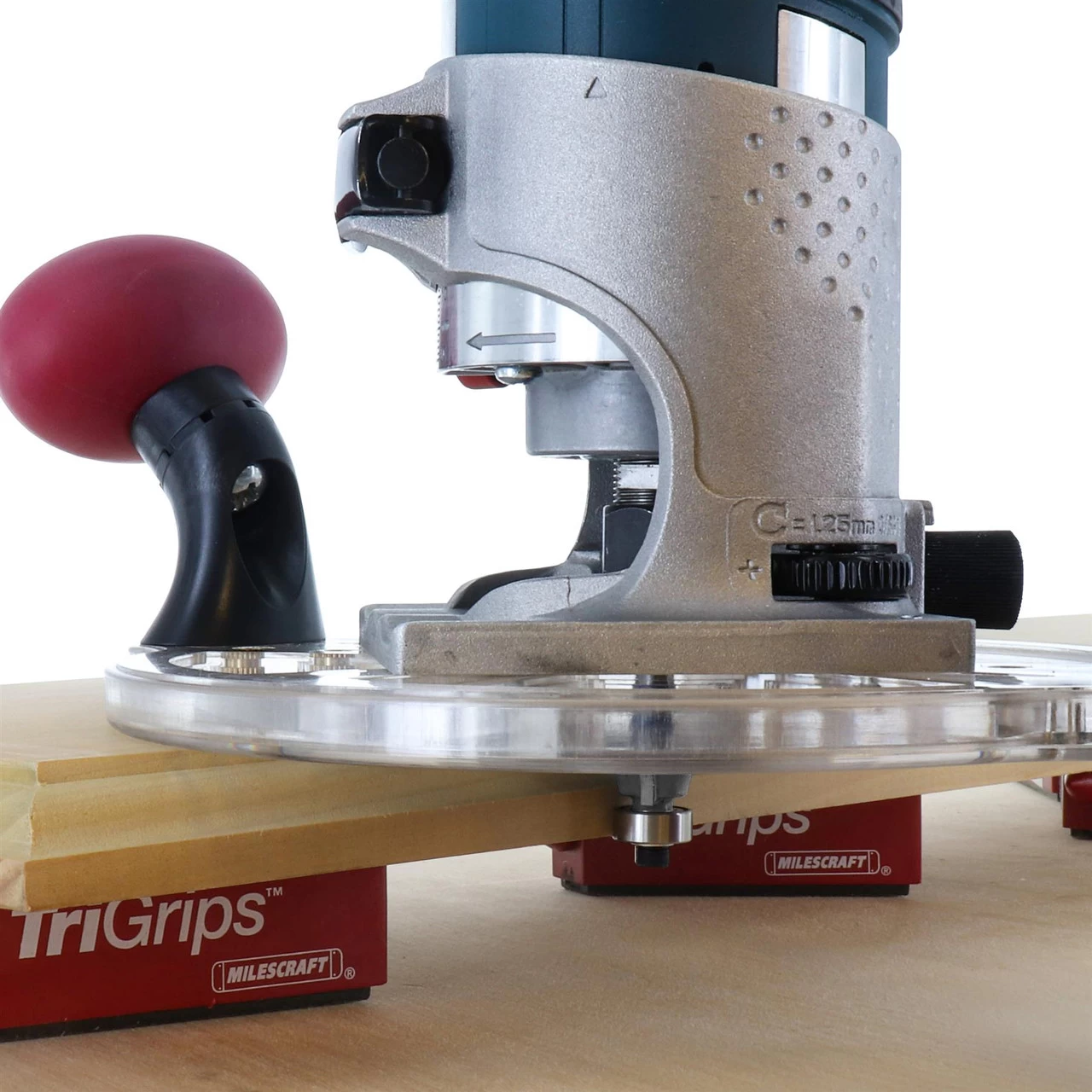 The CompactSubBase™ is ideal for edge routing, template routing, mortise routing and more. With a 6-3/4″ (170mm) diameter and integral handles, it provides improved stability and control over the small base plates provided on compact routers. This attachment is compatible with all compact and trim routers, making it the perfect accessory for your routing applications. Compatible with our AUKTools Metric Threaded Guide Bush Set.