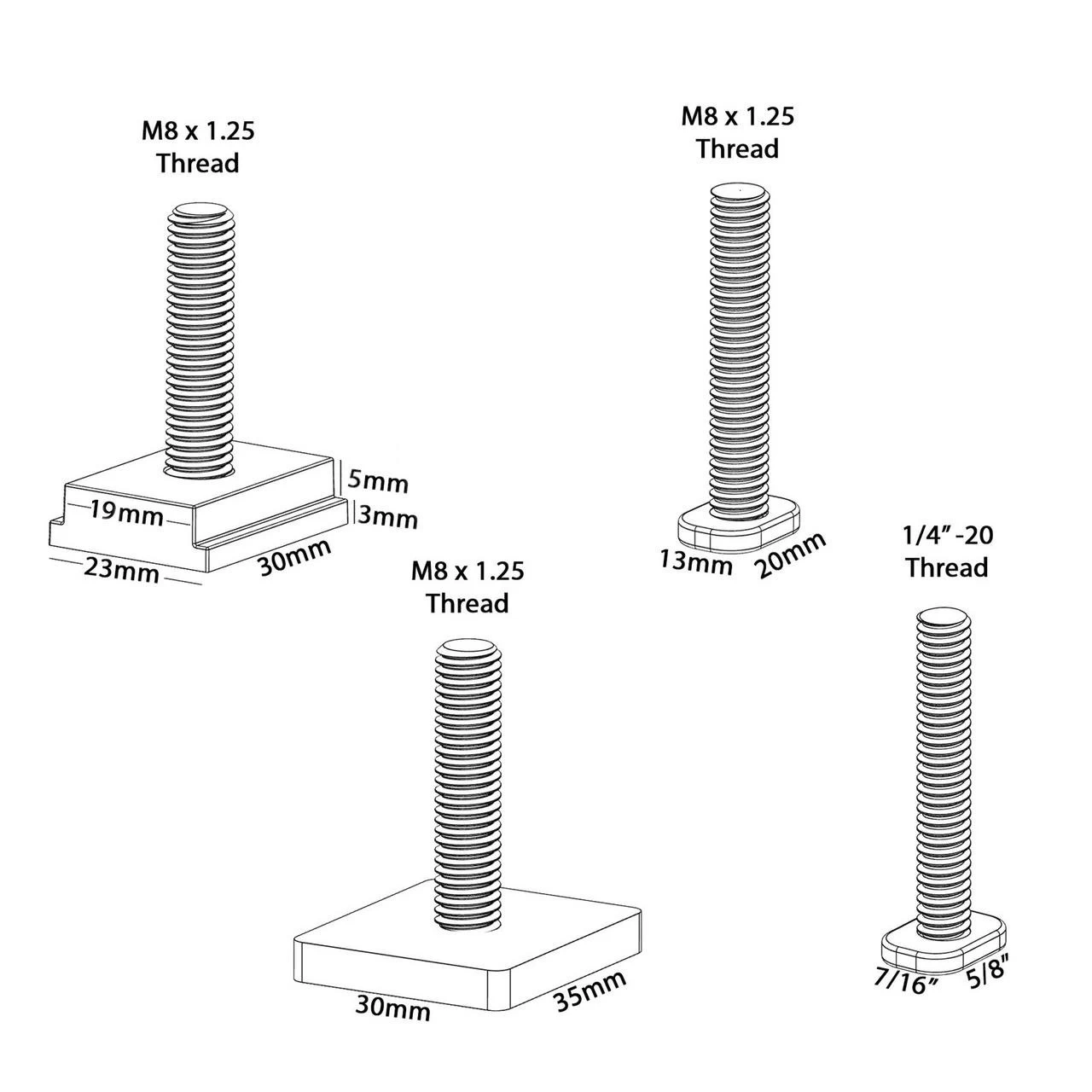 - 1x M8 x 1.25 (23mm x 30mm) T-Bolt