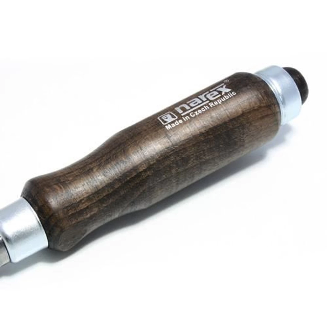 The blade is forged from Chrome Manganese (Cr-Mn) steel and heat treated up to 59 HRc (Rockwell Hardness Scale). The Chrome Manganese (Cr-Mn) steel used in Narex chisels is a low-alloy high-carbon steel developed specifically for making edge tools using the isothermal hardening method. This produces very strong chisels with edge taking and holding properties similar to carbon steel tools. Grind at 25 and hone at 35 degrees. Honing angles can be adjusted to suit your needs – a little steeper for greater edge durability or a little shallower for easier cutting.Â