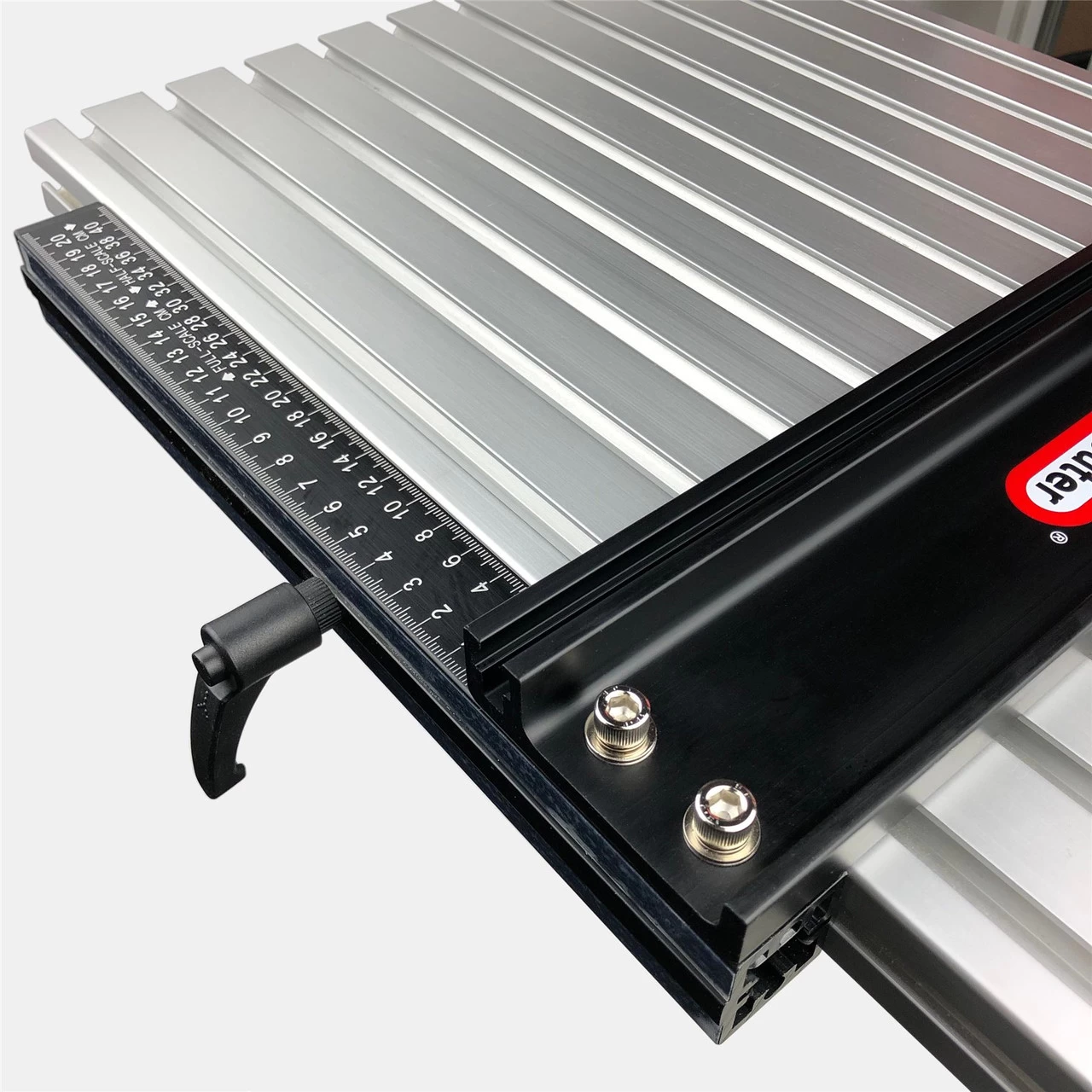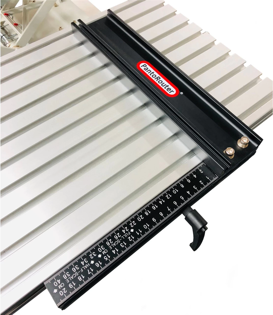 The Centering Scale Fence has both a metric scale and an inch scale.