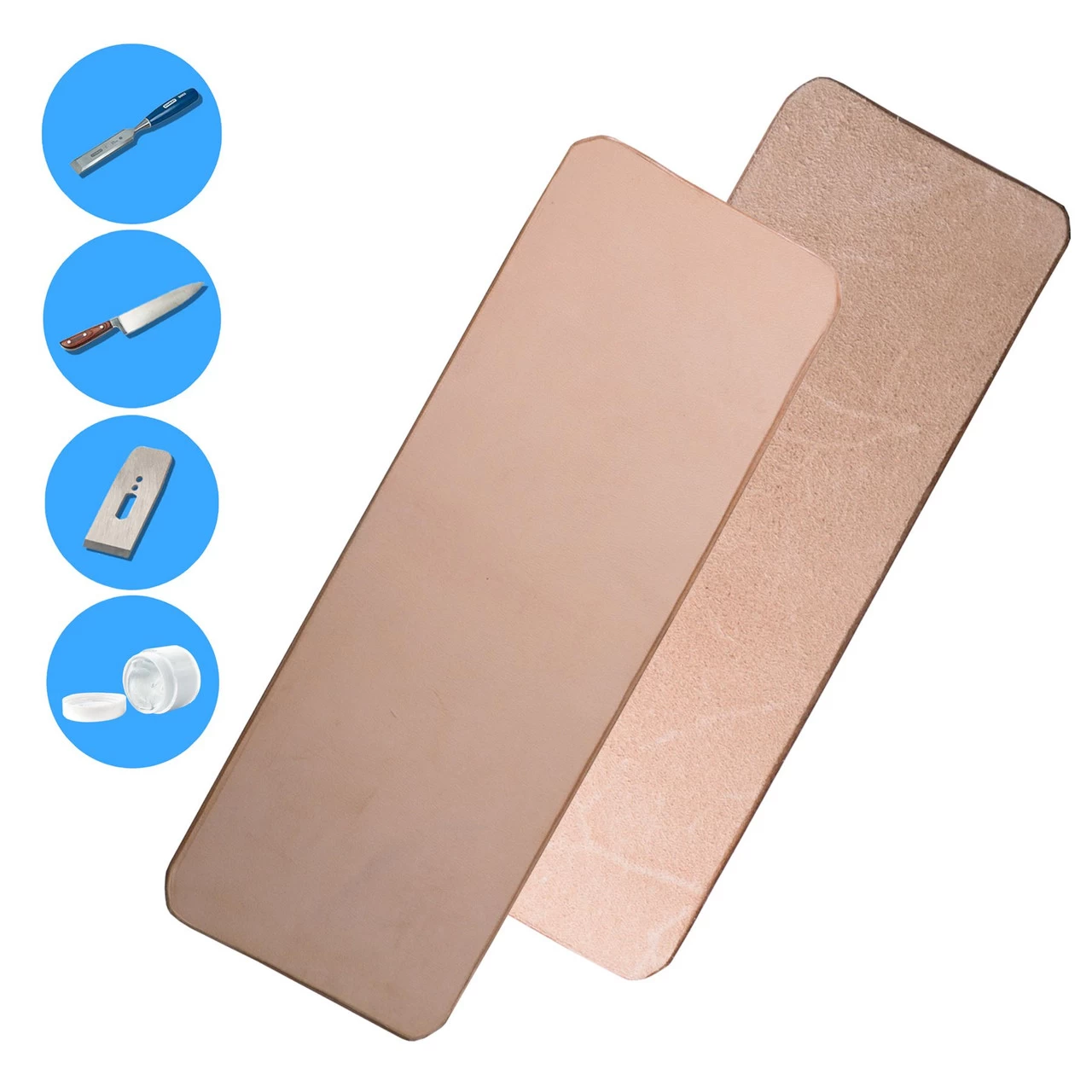 Leather strop for honing and polishing. Hand made in the UK using the best quality hide also sourced from the UK. Robust 4.5mm thick leather with hand moulded edges for a professional finish. One side is coarse which is used to accommodate the Titman Edge Mirror Paste. This does not just polish to an amazing standard but also puts on that final hone to achieve a scary edge.