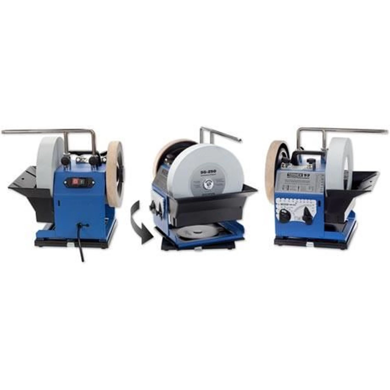 The RB-180 enables you to easily rotate the machine 180° and lock it with complete stability. You can alternate between sharpening and honing, or sharpening towards or away from the edge in seconds.