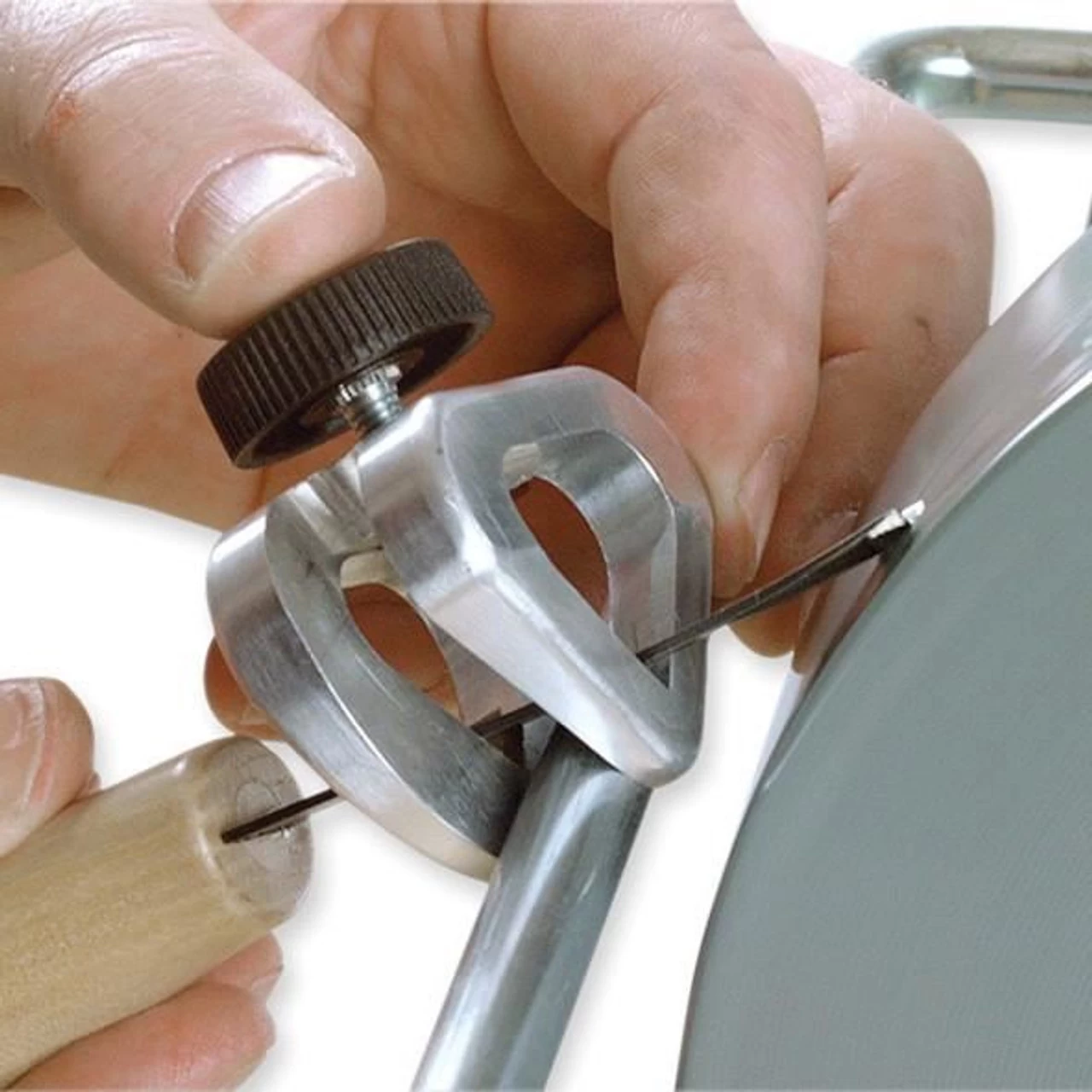 This little jig is designed for sharpening short woodcarving tools and the shortest chisels. Suitable for straight shanked tools, such as wood chisels, carving gouges and tools for power carvers.