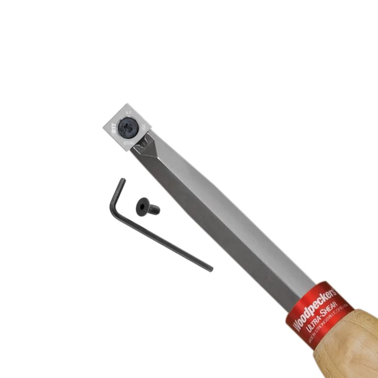 If you love wood turning, but don’t have the time or expensive equipment necessary to constantly sharpen traditional tools, you need Woodpeckers Ultra-Shear carbide insert tools. These tools eliminate the need for sharpening by using nano-grain carbide inserts mounted to induction-hardened alloy steel shafts. When the edge finally gets dull, simply rotate the cutter to a new edge. When all edges are dull, put on a new insert and get right back to your project.Â